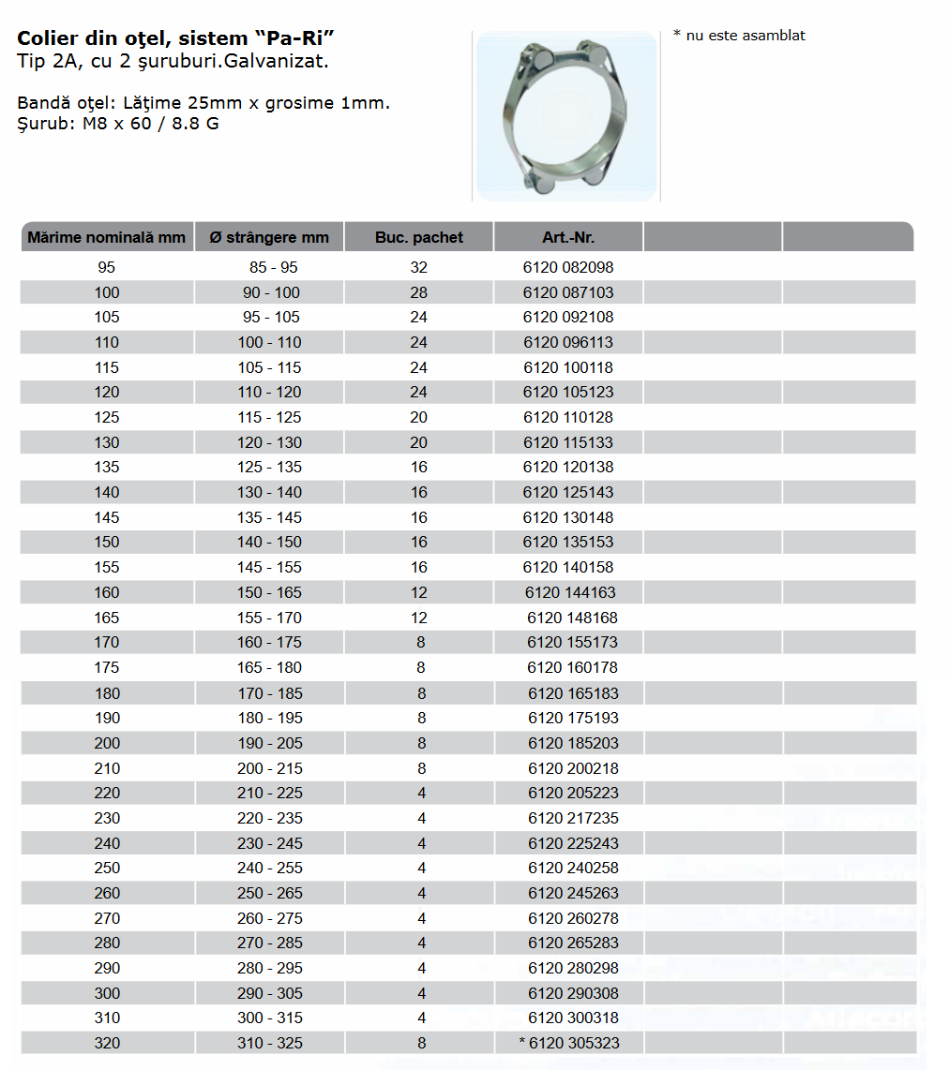 Colier sistem “Pa-Ri” Tip 2A, cu 2 şuruburi.