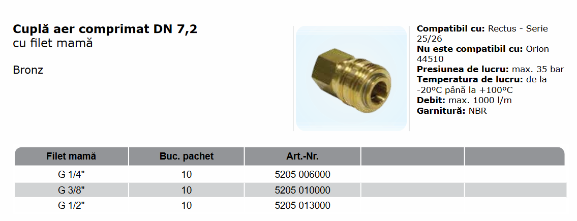 Cuplă aer comprimat mama cu filet mama