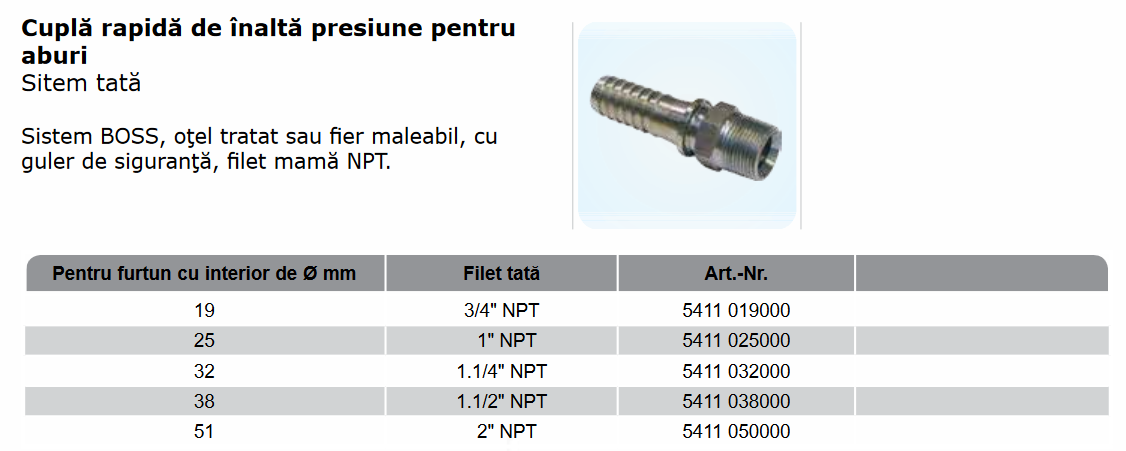 Cuplă înaltă presiune cu filet tata