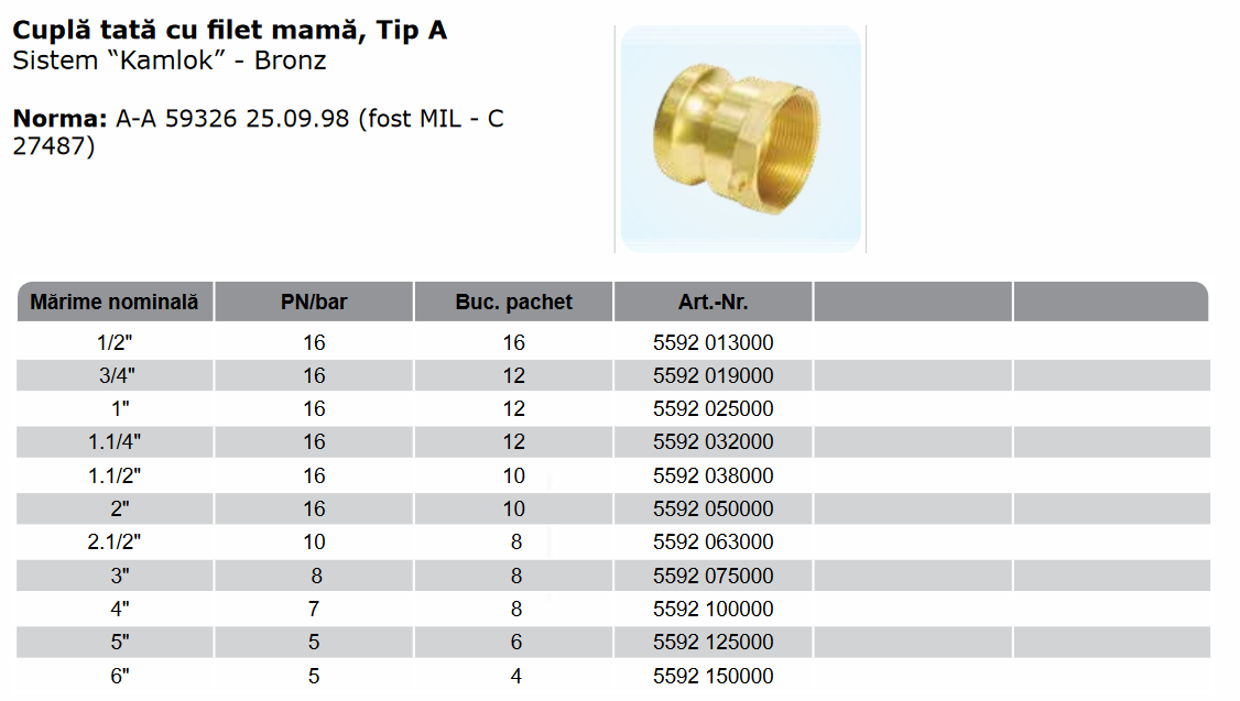 Kamlok tată cu filet mamă, Tip A