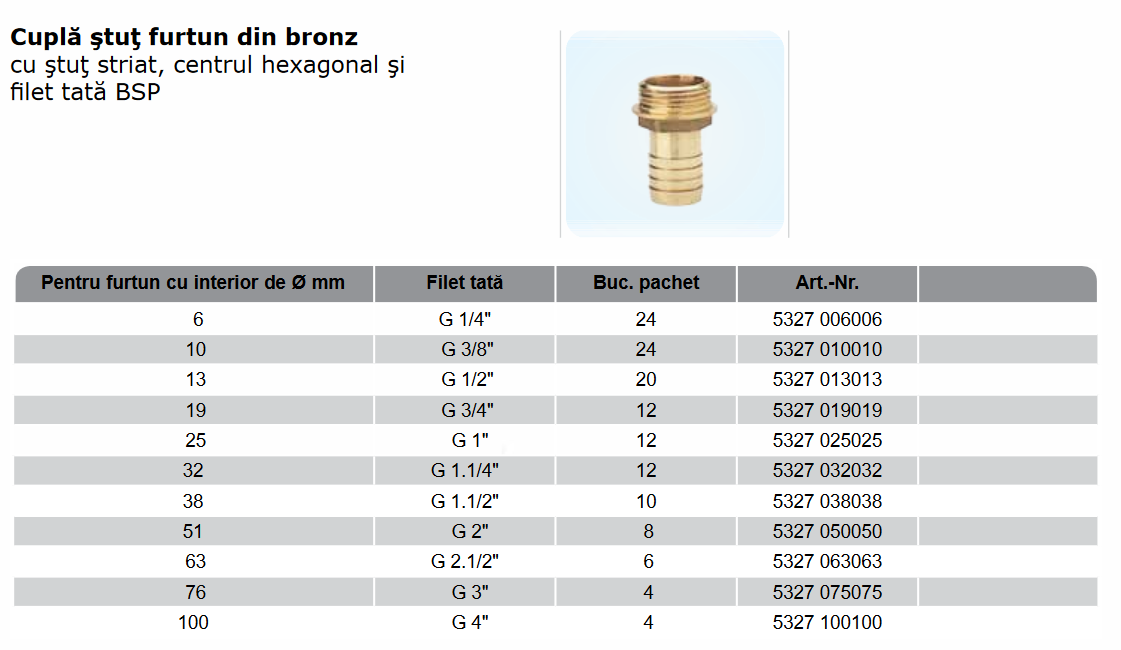 Stuţ furtun cu filet exterior