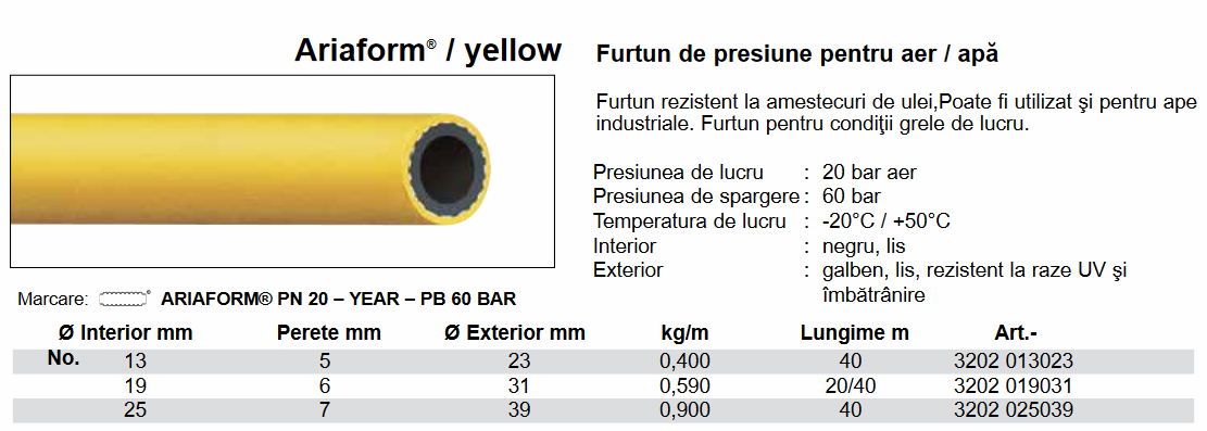 Furtun cauciuc, aer/apă, 10 Bar