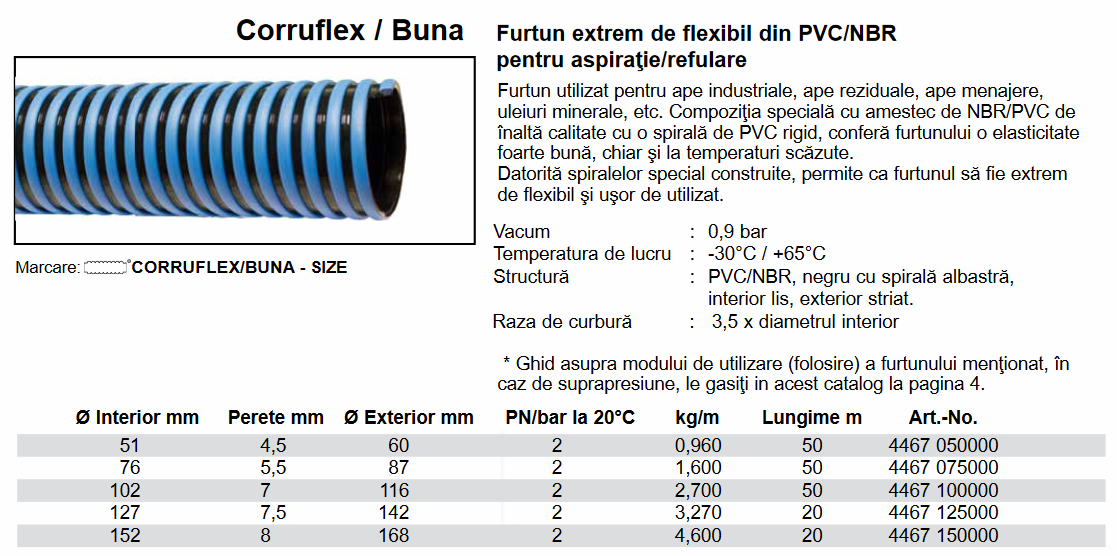 Furtun PVC/NBR, aspiraţie /refulare, 2 Bar