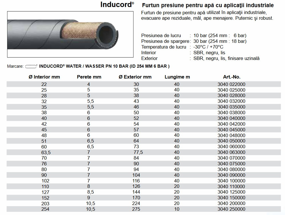 Furtun refulare din cauciuc, 10 Bar
