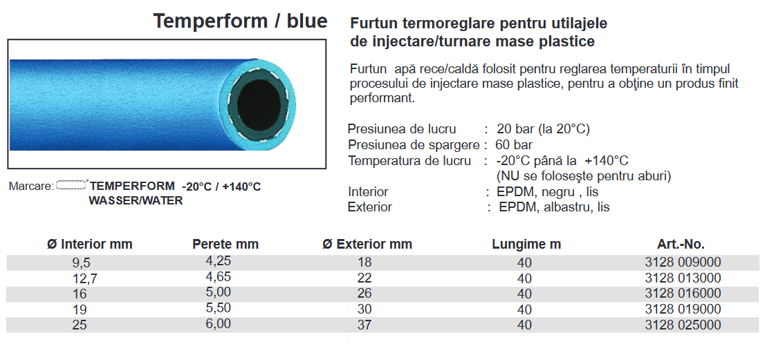 Furtun EPDM apă rece/caldă , 20 Bar