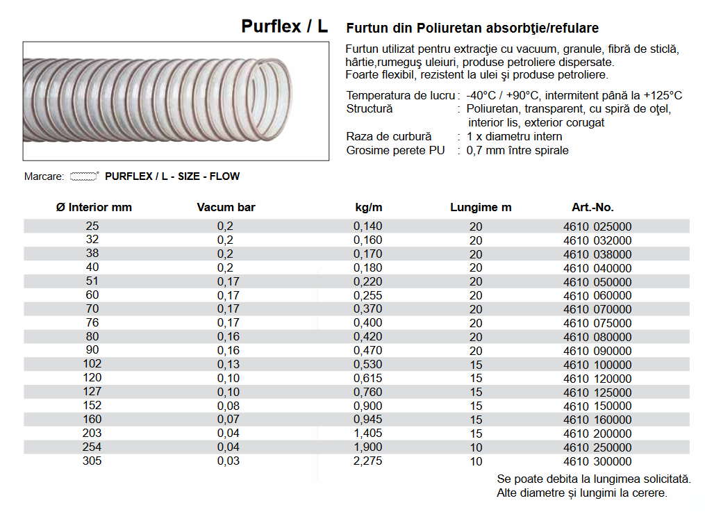 Furtun din PU absorbţie/refulare