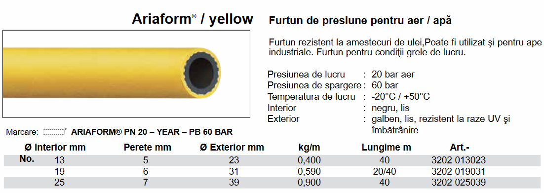 Furtun cauciuc, aer/apă, 10 Bar