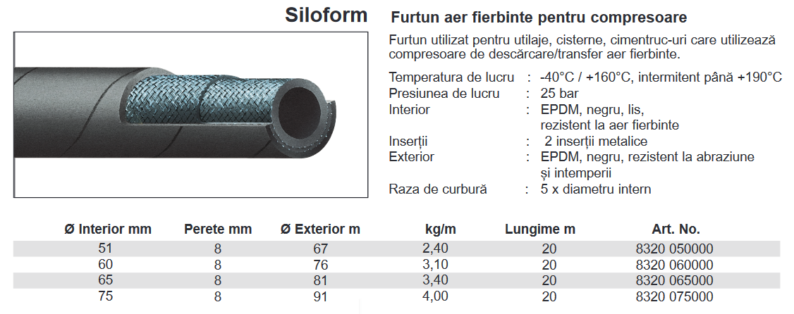 Furtun de aer fierbinte, 25 Bar