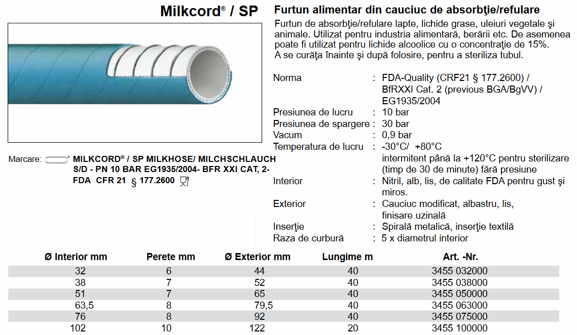 Furtun alimentar absorbţie ,10 Bar