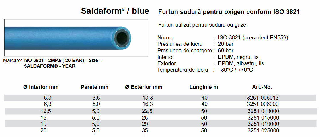 Furtun sudură oxigen, 20 Bar