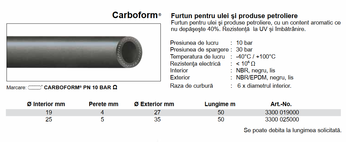 Furtun cauciuc, ulei şi combustibili, 10 Bar