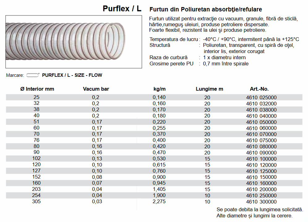 Furtun din PU absorbţie/refular