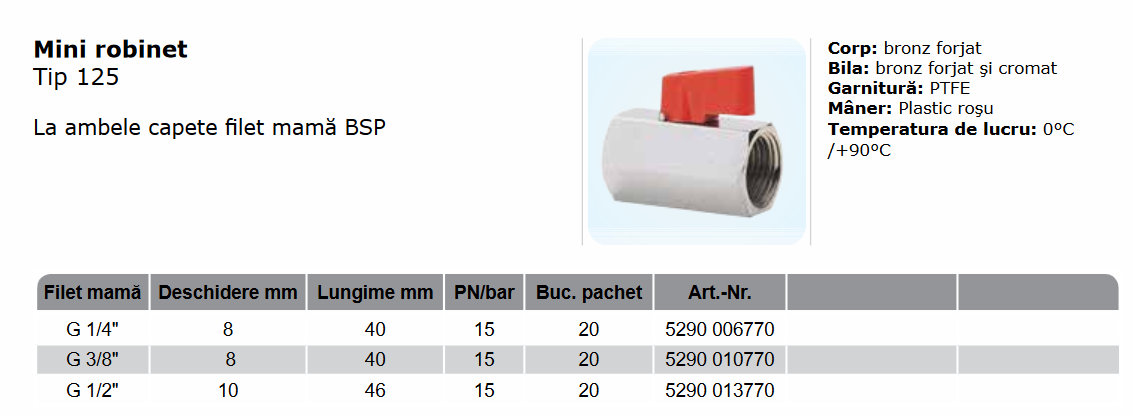 Mini robinet, Tip 125