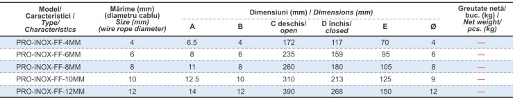 Întinzători cablu furcă-furcă realizați din oțel inoxidabil AISI 316.