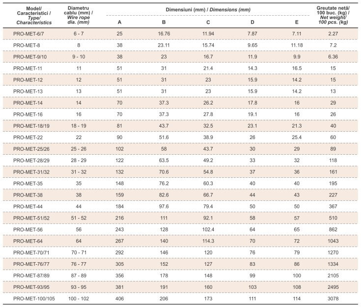 Manșoane din oțel conice (flemish eye) tip PRO-MET