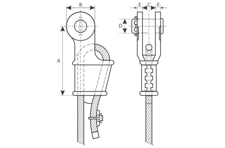 Terminațiile de cablu (papucii de cablu) care se montează cu ajutorul unei pene de fixare amplasată în interior sunt cel mai ușor de montat dintre toate terminațiile de cablu, montajul acestora făcându-se prin rularea cablului în jurul penei de fixare și apoi prin aplicarea unei bride de strângere pe capătul liber al cablului.