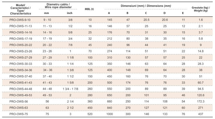 Terminaţii / papuci de cablu (sockets) tip PRO-OWS