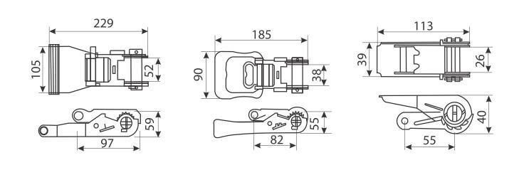Sunt dispozitivele de tensionare a chingilor în vederea ancorării / amarării mărfurilor sau a autovehiculelor pe platforme.