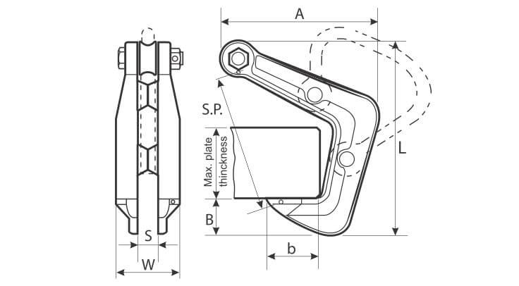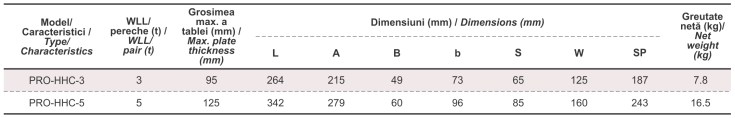 Clești ridicare pentru profile metalice (profile I sau H, tubulatură, profile circulare, mai multe straturi de foi de tablă, etc.