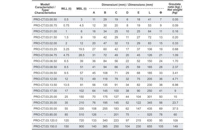 În plus față de modelul PRO-CT.01, acest model de cheie tachelaj dispune de siguranță și piuliță la bolțul de fixare, ceea ce asigură o exploatare mult mai sigură.
