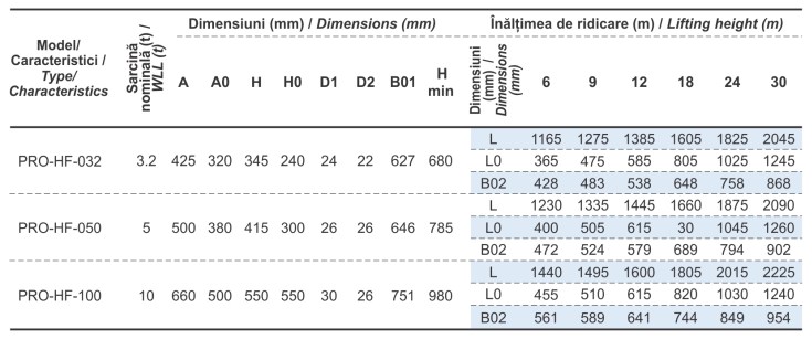 Palan electric cu cablu la punct fix tip PRO-HF