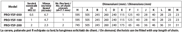Este echipat cu lanț de sarcină grad 80 și săculeț pentru lanț. Poate fi echipat cu o lungime de lanț conform cerințelor clientului.
