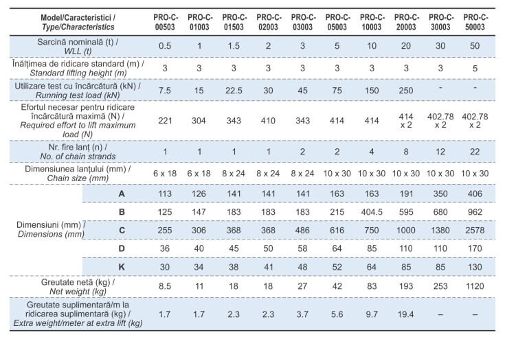 Palan manual cu lanț tip PRO-C