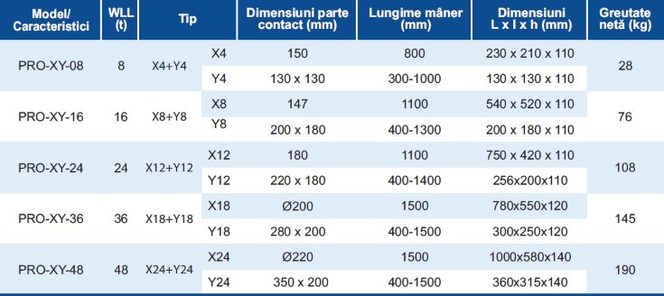 Atenție! Sarcina maximă de lucru este valabilă doar pentru încărcături cu masa distribuită uniform față-spate și stânga-dreapta; în caz contrar, țineți cont de sarcina maximă lucru pe fiecare parte (partea conducătoare 50% din WLL, iar fiecare parte condusă 25% din WLL). Depășirea sarcinilor părții X și a fiecărei părți Y este interzisă!