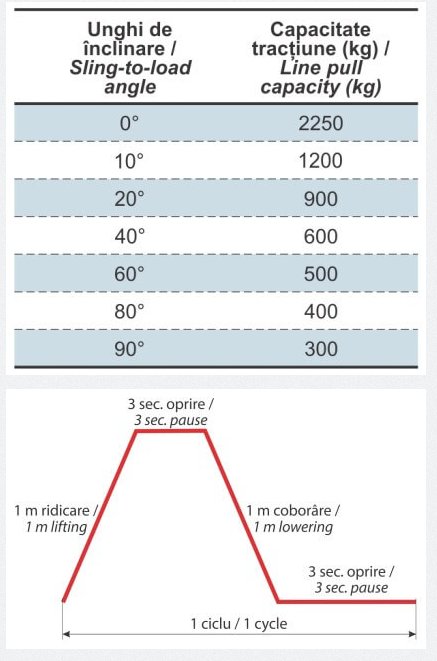 - viteză de ridicare: 10-15 m/min la 50 Hz;
